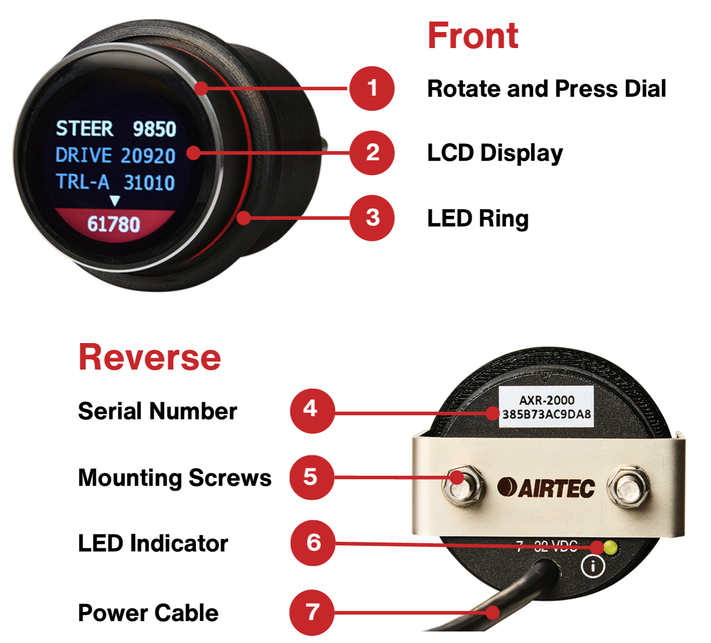 The AXR In Cab LCD display can be integrated with our AXS Truck Scales to remotely display multiple weight readings in addition to the GCM on one screen. To cycle through the weights of each axle group from inside the cab, simply rotate the outside ring of the display to explore the list of connected scales, with the Gross Combination Mass (GCM). The AXR in Cab LCD display features a durable ASA Plastic body, along with a scratch resistant LCD screen. The display is a vibrant, interactive screen that remains clearly visible day or night. The display can be easily mounted inside the cab into a 52mm gauge mounting hole on the dashboard or at a suitable vantage point with a range of mounts available to suit your needs.