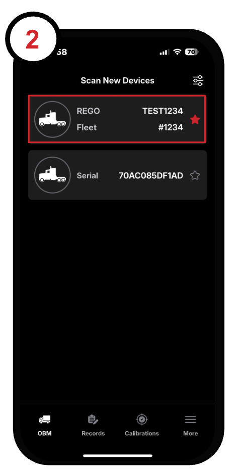 2. After a brief scan, a list of available trucks will appear.
