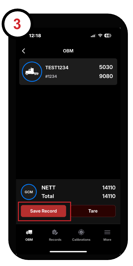 3. The OBM page displays the weights for each axle group in your combination.