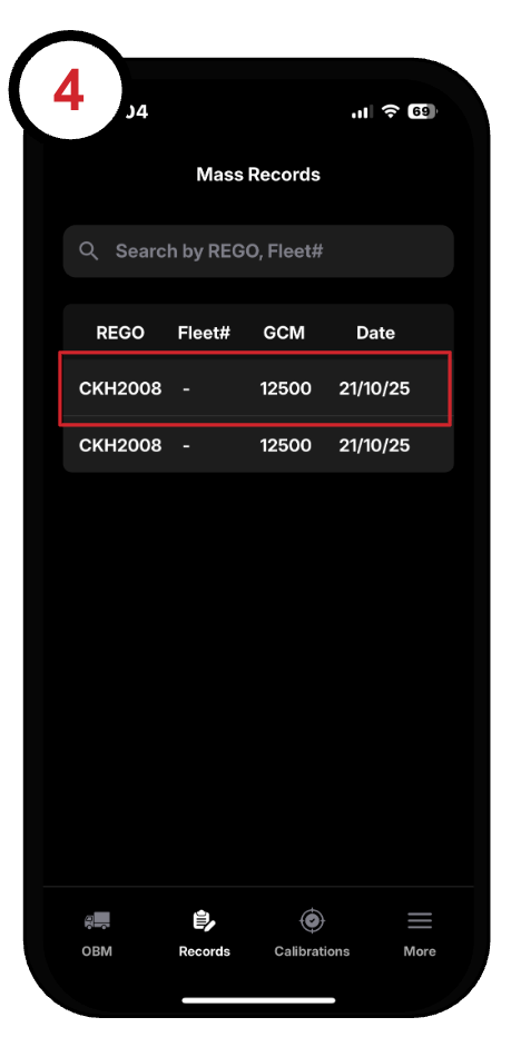 Tap on the truck in your combination to open the OBM page: