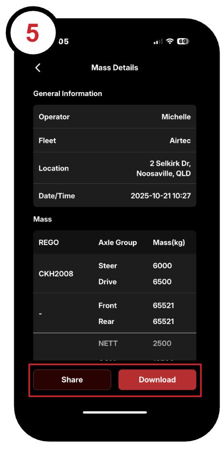 5. To download or share the record tap on the record and choose either download or share: