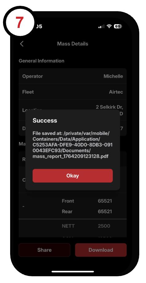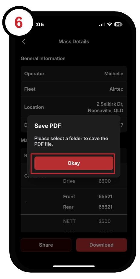 6. Okay button on .pdf generation button and save the record to you phone: