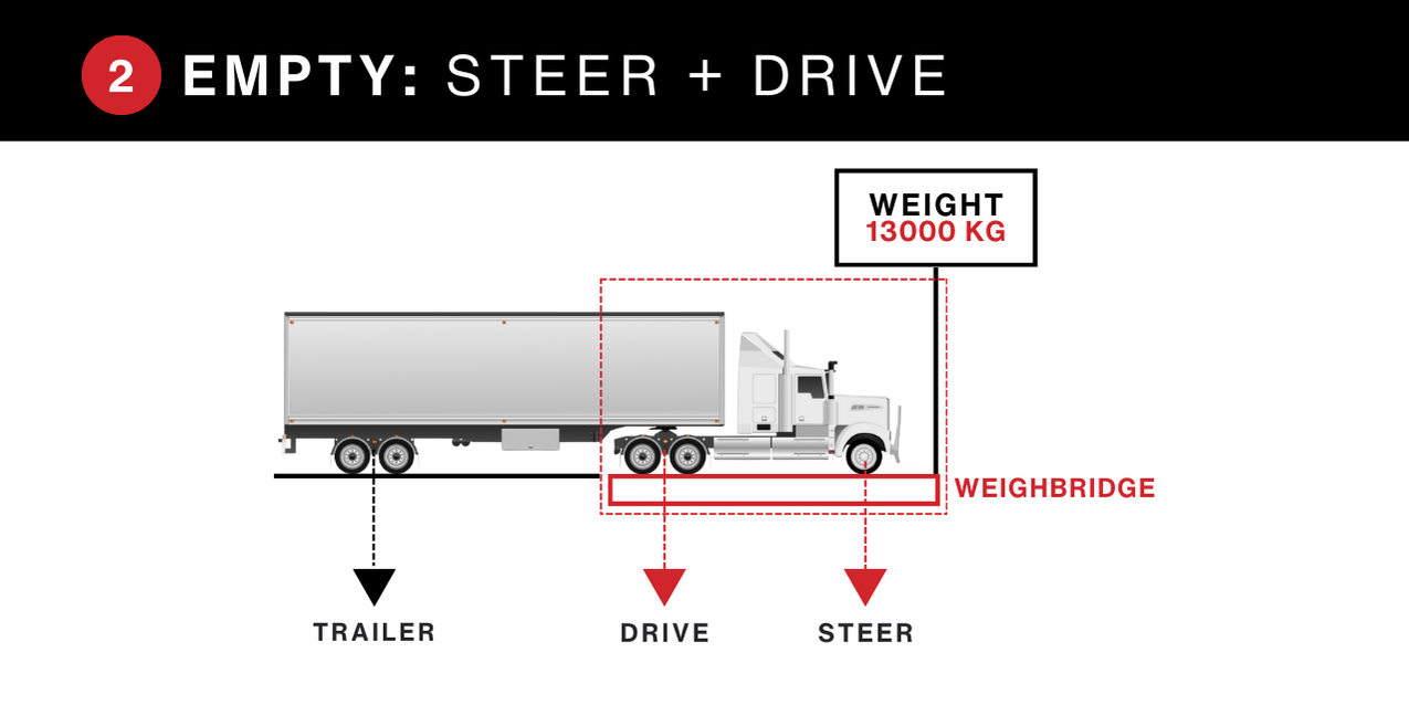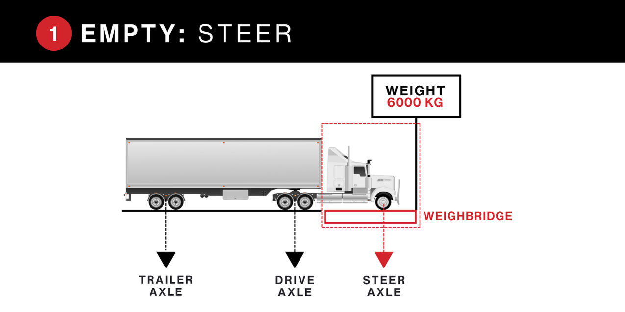 1. Drive over a weighbridge one axle group at a time either while empty or loaded: